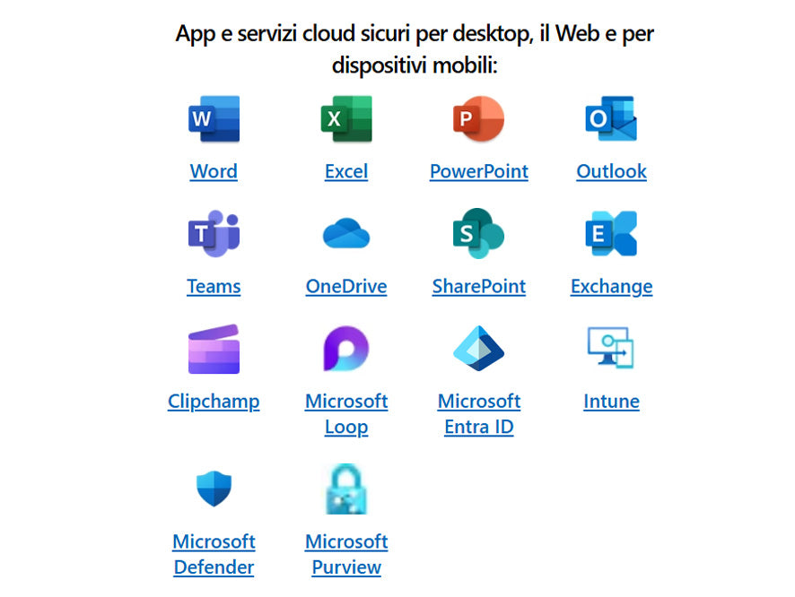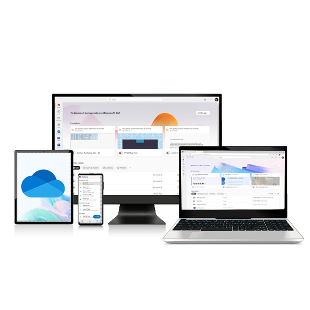 Microsoft 365 è la suite cloud pensata per aumentare la produttività, migliorare la collaborazione e garantire sicurezza ovunque tu sia. Include le app Office che già conosci (Word, Excel, Outlook, PowerPoint), strumenti avanzati come Teams, SharePoint e OneDrive, e soluzioni integrate per la gestione dei dati, l'automazione dei processi e la protezione aziendale.