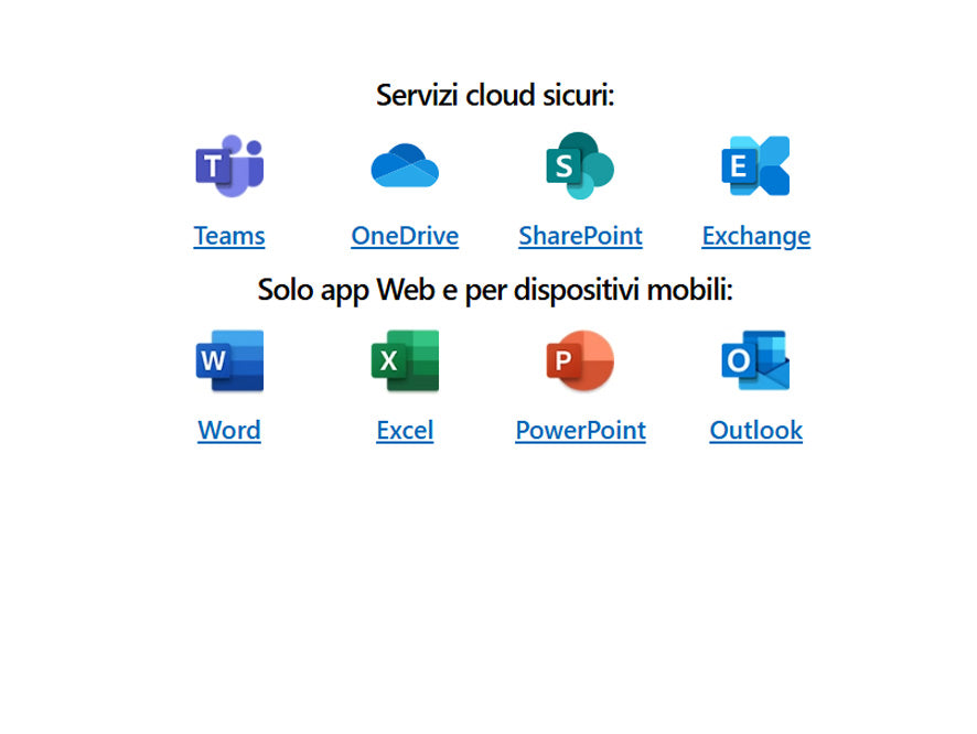 Comunicazione e collaborazione in tempo reale, con chat, chiamate, riunioni online e condivisione file.WORD – EXCEL – POWERPOINT – OUTLOOK E ONENOTE